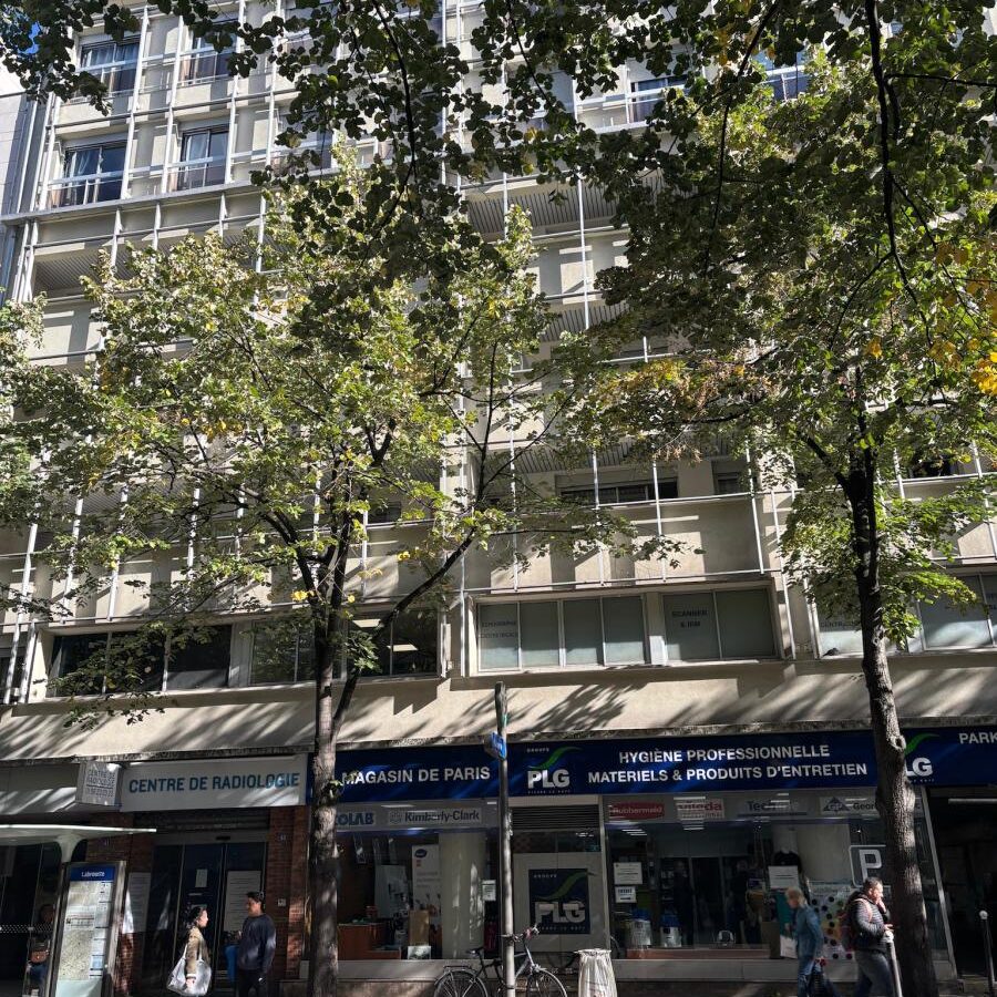 Un local commercial ayant son accès direct sur la rue de Vouillé et s’étendant sur toute la surface du rez-de-chaussée à l’exception de la cage d’escalier à gauche et des rampes d’accès des voitures à droite, communiquant directement avec un sous-sol partiel sur la droite.