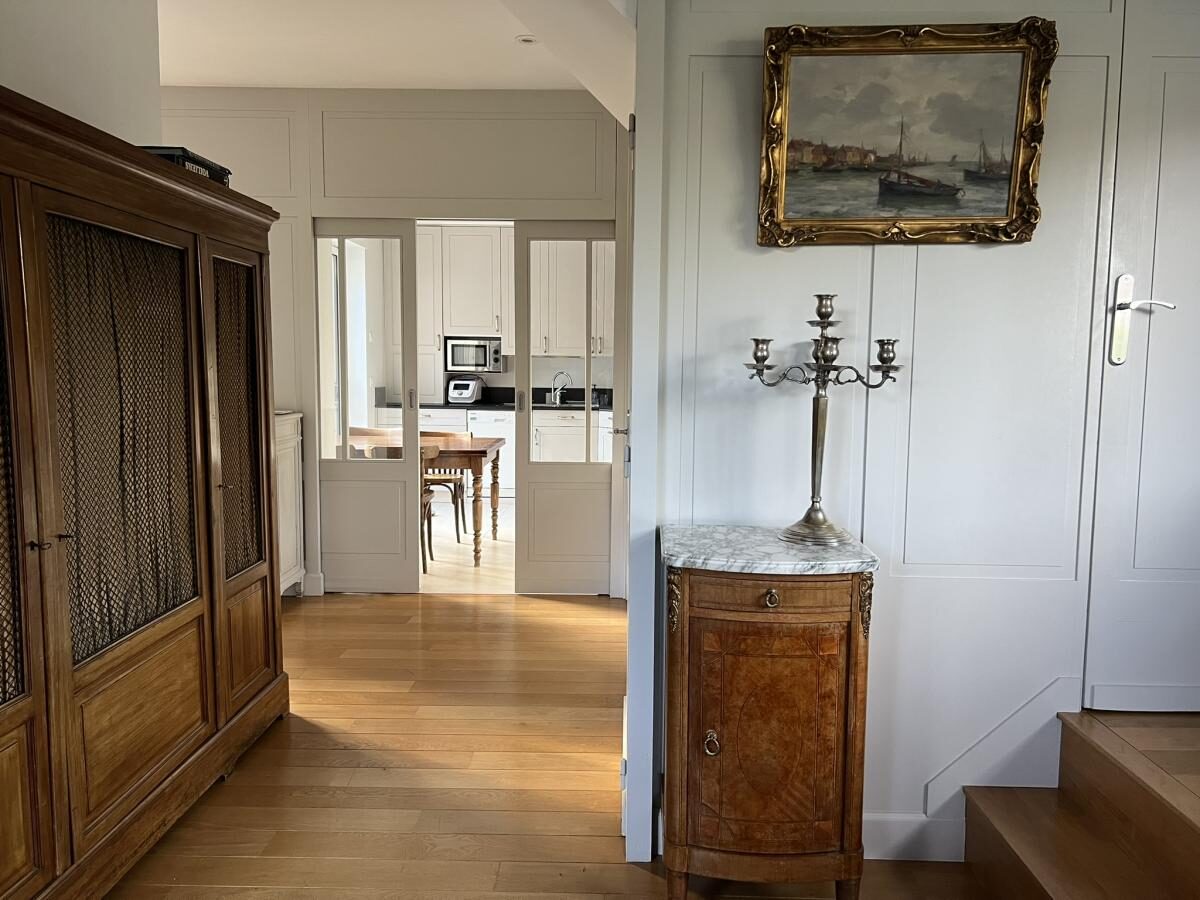 A l’étage, l’escalier dessert un espace sous comble qui peut accueillir une salle de jeu ou un dortoir d’enfants.